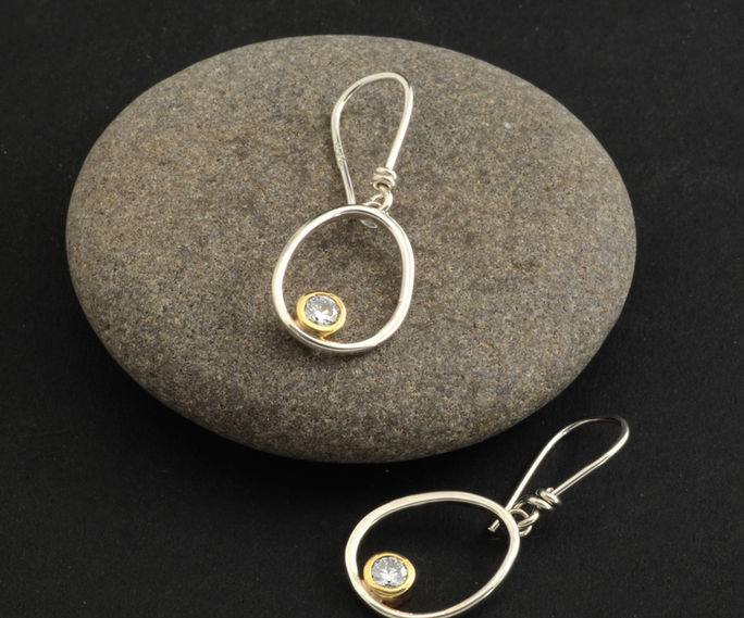 Dainty little irregular oval silver hoops with a 0.17ct moissanite set in 9ct gold